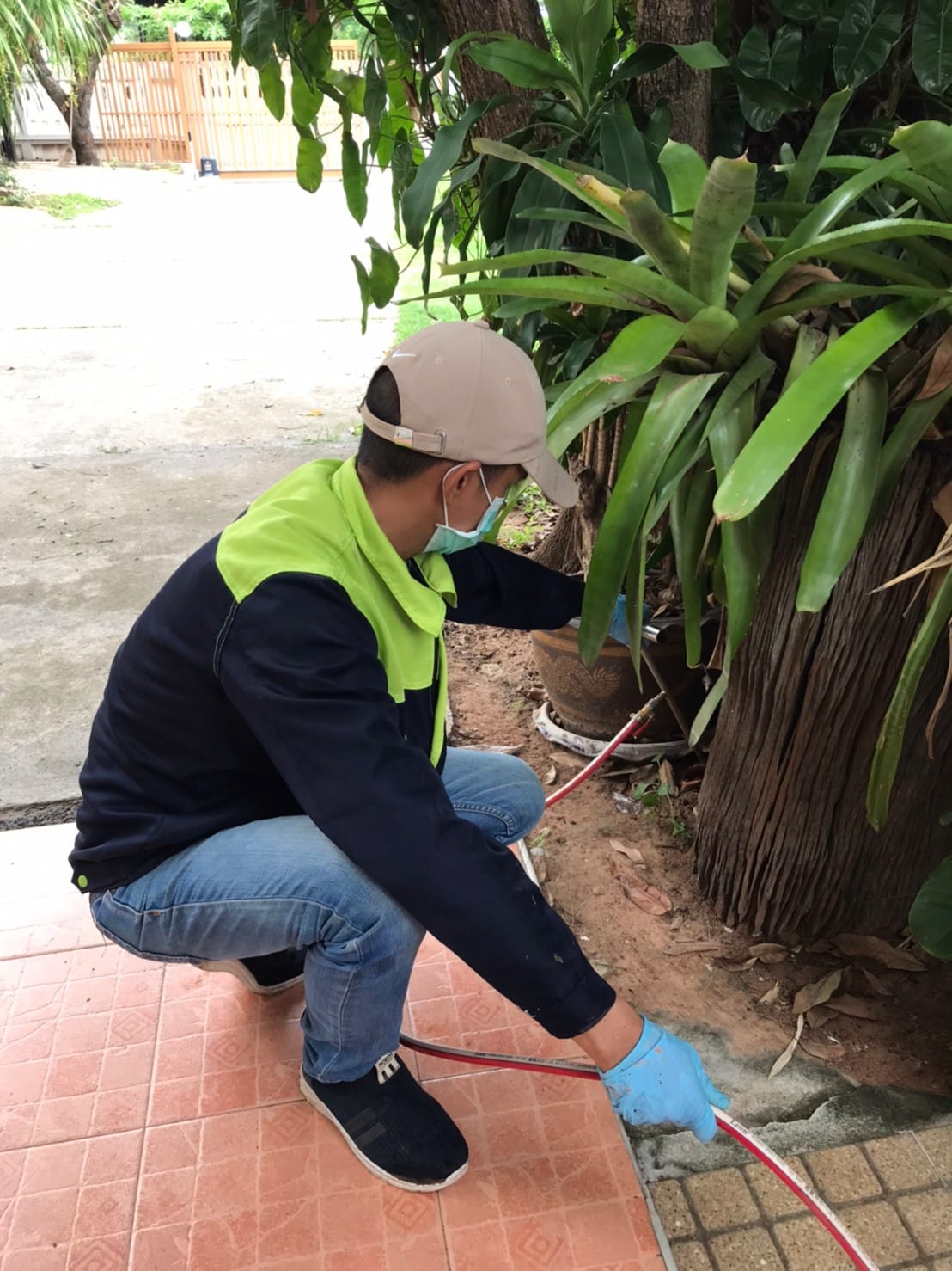 - สเปรย์เคมีรอบนอกอาคารตามแหล่งหลบซ่อน